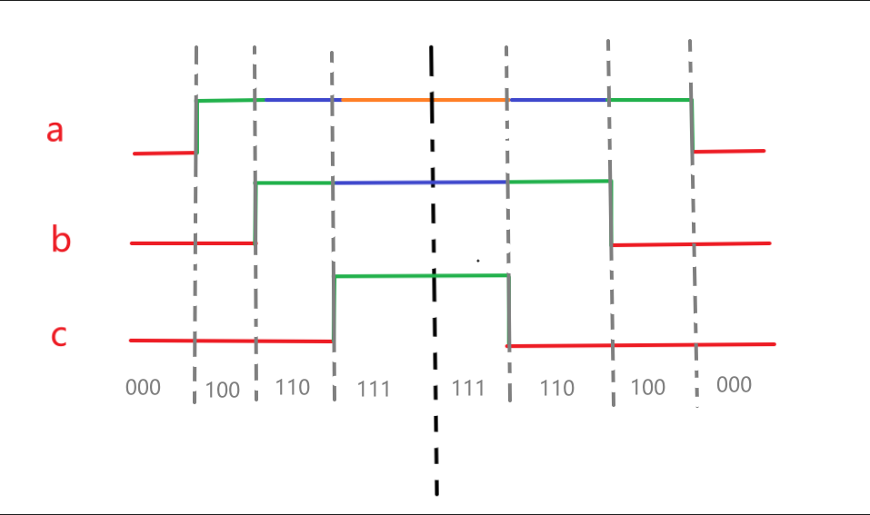 同样道理以此类推其他所有扇区,实际上所有扇区内abc相MOS控制信号发生反转的时间都是以下几个部分的排列组合: